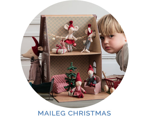 Maileg Christmas Collection of Pixies, Santa, Christmas Mice, Winter Friends, Angels, Garlands, and Christmas Decorations. Heirloom quality.
