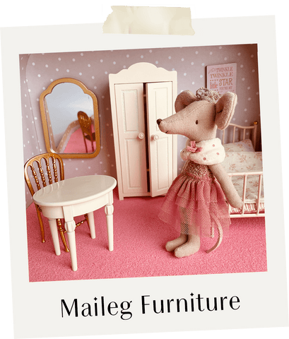 Elevate your Maileg dollhouses with our impeccable selection of furniture and accessories, perfectly tailored for various models including the Maileg Gingerbread house, Maileg Castles, and the classic Maileg dollhouse. Allow us to guide you in transforming your Maileg residence into an enchanting mouse haven. Our comprehensive assortment boasts an array of furniture and accessories, catering to every need.